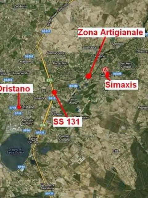 A Simaxis Capannone industriale commerciale artigianale al centro dellaSardegna a ridosso della ss 131 per Sassari e per Cagliari. Situato in zonaD, capannone di circa 600 mq di coperto su lotto di 1892.26 mq, conpossibilita di edificare altri 2385 mc,. Piazzale esterno completamentepavimentato. Lotto interamente recintato. Attualmente viene utilizzato comedeposito. Dispone di totali 600 mq con unico ambiente, due uffici, con bagnoe antibagno. Luminoso, due ingressi per camion. Tutto in ottime condizionigenerale, due cancelli 4 metri per ingresso mezzi e ampio piazzale.Trattabile.Classe F