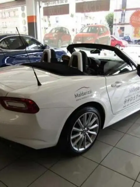 FIAT 124 Spider 1.4 MultiAir Lusso Caratteristiche del veicolo Chilometraggio: 4471 Immatricolazione: 06/2016 Tipo di veicolo: usato Carburante: Benzina Potenza: 103 kW / 140 CV Tipo di cambio: Manuale Marce:6 Colore esterno: Bianco Colore interno: Garanzia: Carrozzeria: Cabrio Cilindrata: 1368 Cilindri: 4 Porte: 2 Posti: 2 Equipaggiamenti: Autoradio, Controllo trazione, Chiusura centralizzata, ESP, Immobilizzatore elettronico, Alzacristalli elettrici, Airbag laterali, ABS, Airbag Passeggero, Cruise Control, Climatizzatore, Fendinebbia, Servosterzo, Regolazione elettrica sedili, Interni in pelle, Airbag, Cerchi in lega, Park Distance Control Descrizione fornita dal venditore: Bianco Ghiaccio(Tristrato) Pack Radio (radio touch 7" + p Pack Premium (Navigatore 3D + Pack Visibility (Fari Led auto Impianto Audio Bose con speake
