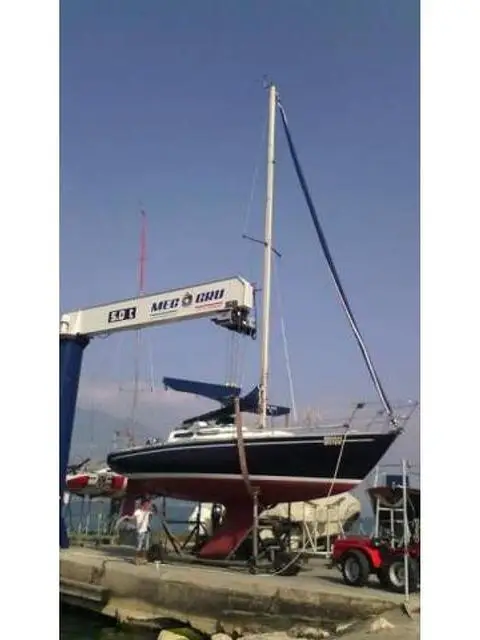 Bellissima imbarcazione modello "Pierrot", cantiere "Mariver", progetto Sciomachen, tenuta in ottime condizioni, lunghezza fuori tutto 9,20 mt, lunghezza al galleggiamento 7,47 mt, baglio max 3,06 mt, tipo di chiglia fissa, pescaggio standard 1,68 mt, dislocamento 2800 kg, riserva acqua 150 lt, riserva gasolio 35 lt, superficie velica 48,70 mq (no patente nautica), randa 16,40 mq, genoa 32,30 mq, Motore diesel marca Lombardini LDW 602 M,17 CV, consumi ridottissimi, tenuto in ottime condizioni (qualsiasi prova), velocita di crociera 5.0 nodi, motore poco rumoroso. Lavello, 2 fuochi, toilette con lavabo e wc, dinette trasformabile con 2 posti letto, 1 cuccetta a poppa, cabina separata doppia dell'armatore matrimoniale a prua, per complessivi 5 posti letto, vhf, due batterie (nuove) di cui una relativa ai servizi e l'altra all'accensione del motore, tutto l'equipaggiamento obbligatorio per la sicurezza in navigazione entro 3 miglia. Genova rollabile su avvolgifiocco Selden, genoa in dacron, due fiocchi e una tormentina usati pochissimo, randa kevlar steccata, randa dacron, lazy bag. Invaso per il rimessaggio invernale. Barca, facile, sicura, con ottime caratteristiche boliniere, ideale sia piacevolissime crociere a lungo raggio, che per regate competitive. L'imbarcazione e sana, prezzo trattabile e si trava a Castelletto di Brenzone, Lago di Garda, per info 339 7493278
