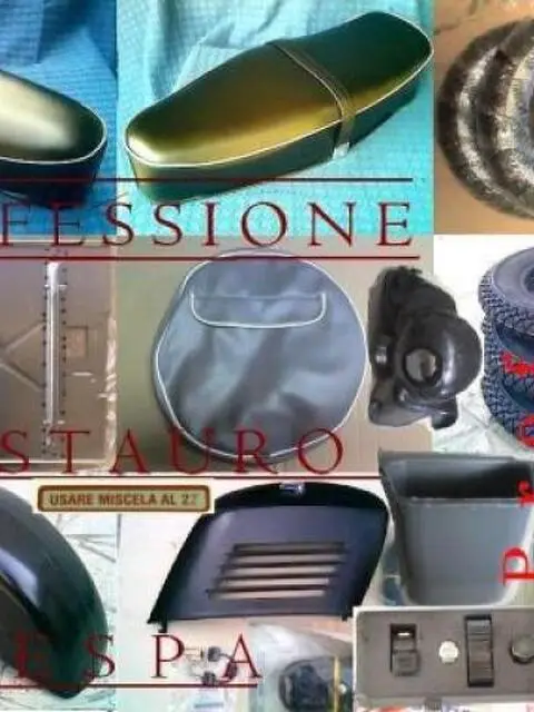 PER RICHIESTE ED ASSISTENZA TELEFONICA CHIAMA IL NR. 377294132O Il KIT pezzi di ricambio, parti e accessori DI RESTAURO è adatto per PIAGGIO VESPA 50 S SPECIAL, a 3 oppure 4 marce dal 1973 alla fine degli anni 80 ideale e indispensabile per chi è alle prese col Restauro Professionale. E' PREVISTA LA SPEDIZIONE CON PAGAMENTO ALLA CONSEGNA Il Kit 50 Special di 129euro, è raffigurato nella foto 2. Nel dettaglio si compone dei seguenti ricambi : - Coppia Manopole nere Piaggio - Coppia Leve cromate con finale a pallina della frizione e del freno anteriore + 2 perni di ancoraggio - Faro anteriore rettangolare completo di parabola e portalampade - Tappo nero con marchio Piaggio del conta/Km - Nasello anteriore grigio completo di striscetta cromata con stemma Piaggio - SalvaBordo scudo anteriore originale in metallo alluminio - Scritta VESPA anteriore - Targhetta 50SPECIAL posteriore - Cresta parafango cromata - Copri-oscillante ruota anteriore - Serie gommini per:freno, leva miscela, 5 funghetti di battuta per lo sportellino motore, passacavi sotto pedana. - Coppia Scarpette/gommini cavalletto - Serie Strisce pedana in alluminio complete di puntali, gomma nera e ribattini di montaggio - Tappeto grande della pedana - 2 Tappi centrali cromati dei tamburi - Fanale Stop posteriore completo di vetrino,tettuccio,portalampade e guarnizione. Il costo di questo Kit Special50 50S è di 129 Euro . RISPARMIA SULLA SPEDIZIONE, a parte dal Kit, sono disponibili ALTRI pezzi di ricambio nuovi tutti per vespa S50 : - Serie di guaina con cappucci, + 2 cavi del cambio, 1 frizione, 1 acceleratore, 1 freno anteriore, 1 freno posteriore con guaina + 1 aria starter Euro 20 - Sportellino motore Euro 20 - Ghiera cornice faro cromata Euro10 - Impianto elettrico Euro 17 - Devioluci completo originali Euro 24 - Claxon EURO13 - Scatoletta morsettiera del motore per impianto elettr. Euro9 - Serratura bloccasterzo Euro 10 - Levetta sportellino motore Euro6 - Sella a gobba Euro 48 - Fungo / perno per aggancio sella Euro4 - Sella lunga 2 posti con maniglietta centrale e bordino grigioEuro 75 - Gancio borse Euro 6 - Kit sella corta ( tipo bicicletta ) anteriore + cuscino posteriore + piastra Euro 169 - Pararango anteriore Euro 28 - Serbatoio euro 79 - Bauletto portaoggetti retro scudo euro 89 - Vite laterale del parafango euro2 - Conta/Km fondo scala 80 Km/H 0 120 Km/h, completo di cordina con guaina e doppio ingranaggo da mettere alla ruota Euro 45 - Specchietto retrovisore cromato con staffa Euro 18 - Ammortizzatore anteriore Euro 28 - Ammortizzatore posteriore completo di mollone Euro 32 - Pedana completa in lamierato lunga 52,5cm; larga 42cm Euro 69 - Scudo completo di pedana in lamierato Â180 - Cavalletto nero o zincato Euro 18 - Marmitta a saponetta originale completa di collettore a gomito Euro 37 - Marmitta espansione a siluro cromata tipo Primavera Euro 89 Marmitta a siluro nera tipo Primavera ET3 euro65 - Ganasce freno anteriori Euro 9 - Ganasce freno posteriori Euro 10 - Asta portaruota di scorta Euro 20 - Cerchione da 9 pollici aperto completo di viti per Special 3 marce Euro 33 - Cerchione da 10 pollici aperto completo di viti per Special 4 marce Euro 16 - 3 copertoni neri 2.75-9 Euro 55 - 3 copertoni neri 300-10 Euro 55 - 3 Copertoni fascia bianca 300-10 Euro 89 - 3 Camere d'aria 2,75-9 oppure 3.00-10 Euro 15 - Copri ruota di scorta in pelle grigio o nero con tasca portaoggetti Euro 32 - Coperchio copriventola di raffreddamento cromato Euro 14, nero da verniciare euro 10 - Cuffiotto / bocchettone del collettore aspirazione Euro 6 - Cuffia copri cilindro Euro 9 - Vano porta oggetti sotto sella Euro 6 - Leva avviamento messa moto Euro 18 - Rubinetto benzina completo di leva apri e chiudi Euro 14 - Set guarnizioni motore Euro 6 - Serie cuscinetti revisione albero motore + paraoli Euro 25 - Serie cuscinetti parastrappi + albero ruota posteriore 4 pz Euro 30 - Serie completissima di tutti i cuscinetti presenti nel carter motore Euro 55 - Dischi frizione rinforzati + molla Euro 14 - Silentblock anteriori (gommini aggancio motore al telaio) completi di boccola Euro 18 - Sinentblock posteriore Euro5 - Albero motore con biella Euro 58 - Gruppo termico composto da: Cilindro + pistone + testata + serie guarnizioni, cilindrata 75 - 90 - 105cc Euro65 - Gruppo termico 50cc 38,5 mm di alesaggio Euro 85 - Carburatore - 16/16 Euro65 - Carburatore - 16/10 - 19/19 euro75 - Bobina esterna alta tensione + filo + spinetta + pipetta Euro 25 - Bobina interna alta tensione o bassa tensione candelavolano Euro 28 - Bobina interna luci Euro 25 - Punte ruttore contatti Euro 9 - Condensatore Euro 9 - Ralle sterzo superiori e inferiori complete di sedi Euro 25 - Complessivo cuscinetti + perno per oscillante ruota anteriore Euro 15 - Etichetta adesivo norme di rodaggio + usare mix 2% Euro 10 - Pomello aria con levetta posteriore Euro 8 - Pedale freno Euro 20 - Portatarga Euro 4 - Coperchietto deviatore cambio motore Euro 6 - Tubo Manopola cambio Euro 26 - Tubo Manopola acceleratore Euro 19 - Kit ganci comandi cambio + acceleratore Euro 15 - Vite perno motore Euro 6 - Vite perno manubrio Euro 5 - Kit 10 viti da 7 mm ( chiave 11) euro 3 I ricambi di carrozzeria e motore sopra elencati sono specifici per vespa50 vespino special50 specialino con sigla del telaio originali ( V5A2T - V5B1T - V5B2T -V5B3T - V5B4T V5A2 - V5B1 - V5B2 -V5B3 - V5B4 V5B V5A) sigla motore ( V5A2M - V5B1M - V5B2M -V5B3M - V5B4M ) >>SPEDIZIONE SICURA CON PAGAMENTO ALLA CONSEGNA. Per altre domande richieste e preventivi veloci è preferibile il contatto telefonico, per un acquisto sicuro che soddisfi al meglio ogni Vs esigenza. PER RICHIESTE ED ASSISTENZA TELEFONICA CHIAMA IL NR. 377294132O